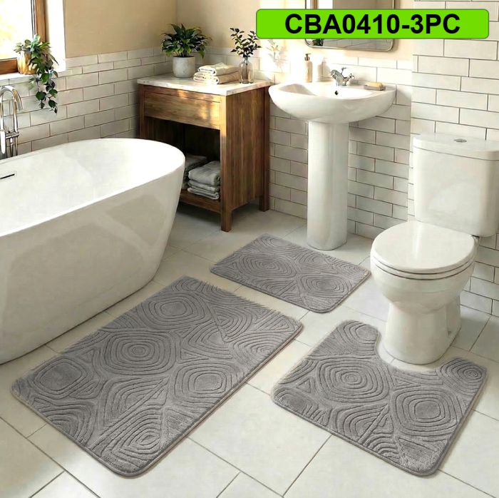 Set 3 covorașe pentru baie, antiderapante CBA0410-3PC gri.
